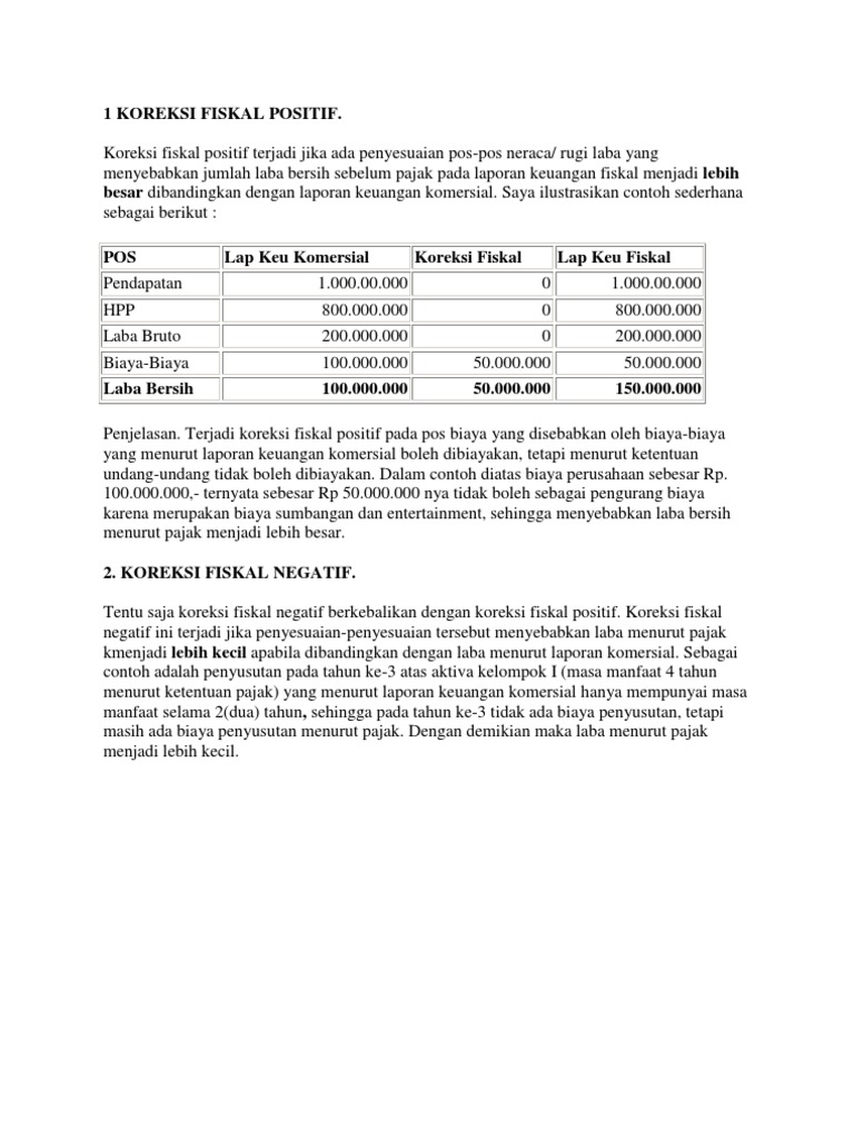 !ata lap<b>ran keuangan taun #$$% adala sebagai berikut &dalam ribuan rupia. Jenis koreksi anggaran positif tergantung pada faktor lain, diantaranya seperti: Selamat siang para pengunjung blog ecotax, kali ini admin akan menshare tentang jit. Koreksi fiskal laporan keuangan yang disusun perusahaan biasanya harus disesuaikan dengan peraturan fiskal ketika laporan keuangan tersebut sebagai dasar pada spt pph untuk memenuhi kebutuhan pelaporan pajak maka perusahaan melakukan penyesuaian fiskal (koreksi fiskal). Documents similar to contoh soal dan jawaban rekonsiliasi fiskal.