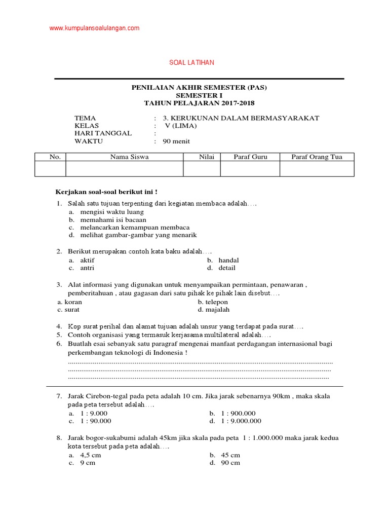 Kunci jawaban soal untuk latihan penilaian harian dan ulangan. Soal uas bahasa indonesia kelas 5 sd semester 1 (ganjil) dan kunci jawaban 20 november 2017 bimbingan belajar brilian 0 komentar a. Berikut ini adalah contoh latihan soal tematik kelas 5 tema 5 mapel bahasa indonesia dan kunci jawaban untuk tahun ajaran 2019/2020. Soal latihan uas/pas bahasa indonesia sd/mi kelas 5, jawaban soal pilihan ganda dan essay, ada 25 pilihan ganda dan 10 essay. Soal essay tentang microsoft word beserta jawabannya.