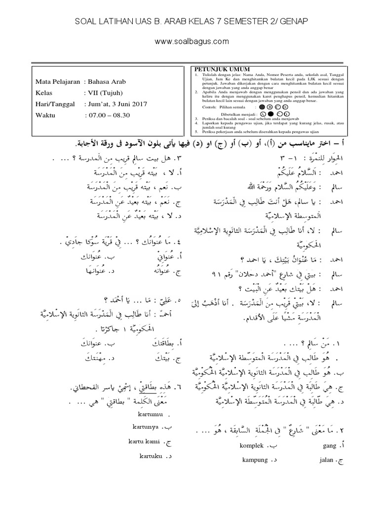 Soal Bahasa Arab Kelas 7 Semester 2 - Get Soal Bahasa Arab Kelas 7 Semester 2 Free. 2 soal uts bahasa arab kelas 7 mts semester 2 genap daftar lengkap harga kue michelle bogor. Soal pat ini merupakan hasil analisa dari berbagai buku sumber bahasa arab, terutama buku bahasa arab mts kelas 7 terbaru revisi tahun 2020 (tanpa tulisan uji publik). 1 ulangan akhir semester a. Ukk tema 9 kelas iv sd/mi. Umur pak andi 28 tahun lebih tua dari umur amira.